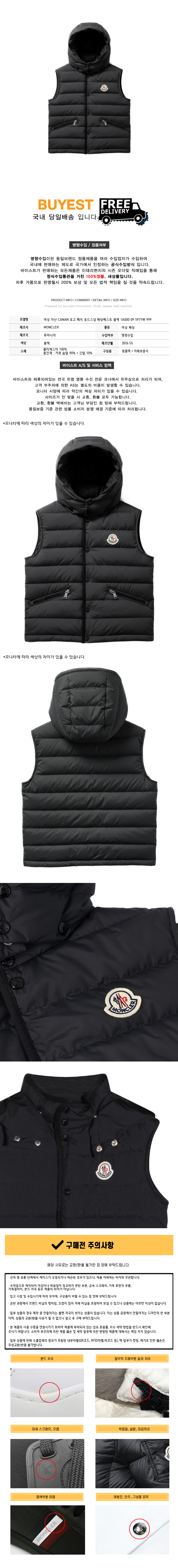 * 모 델 명 : 여성 카난 CANAN 로고 패치 후드스냅 패딩베스트 블랙 1A000 09 597YW 999