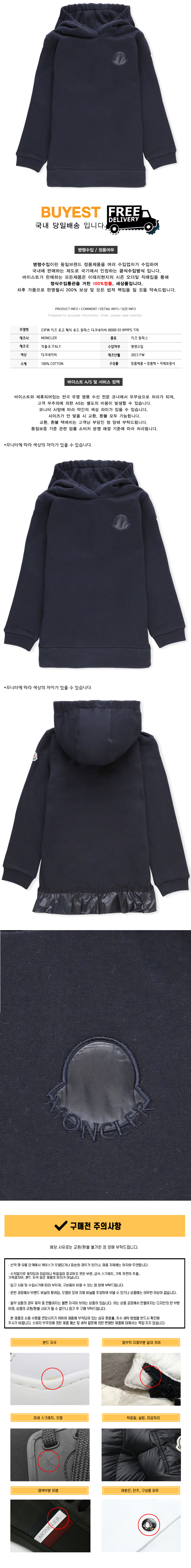 * 모 델 명 : 23FW 키즈 로고 패치 후드 원피스 다크네이비 8I000 03 899PS 778
