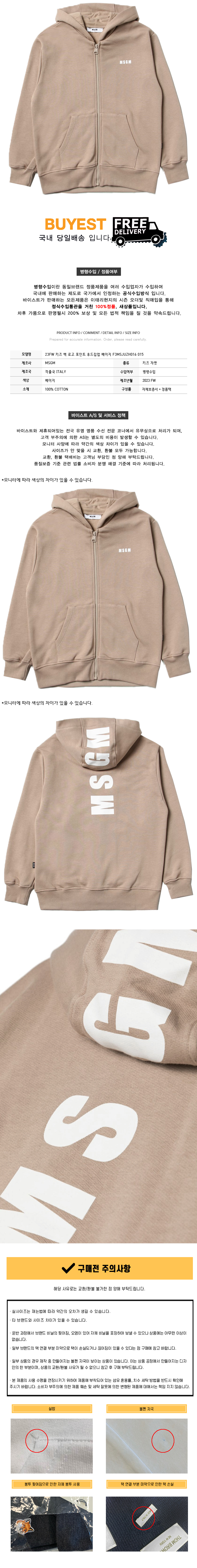 * 모 델 명 : 23FW 키즈 백 로고 포인트 후드집업 베이지 F3MSJUZH016 015