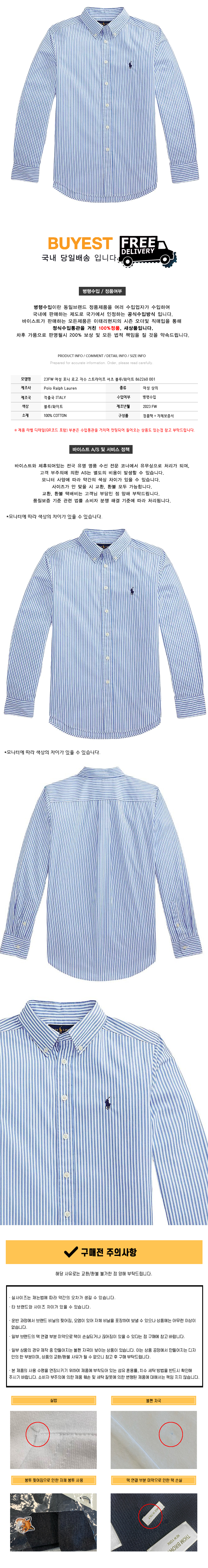 * 모 델 명 : 23FW 여성 포니 로고 자수 스트라이프 셔츠 블루/화이트 862260 001