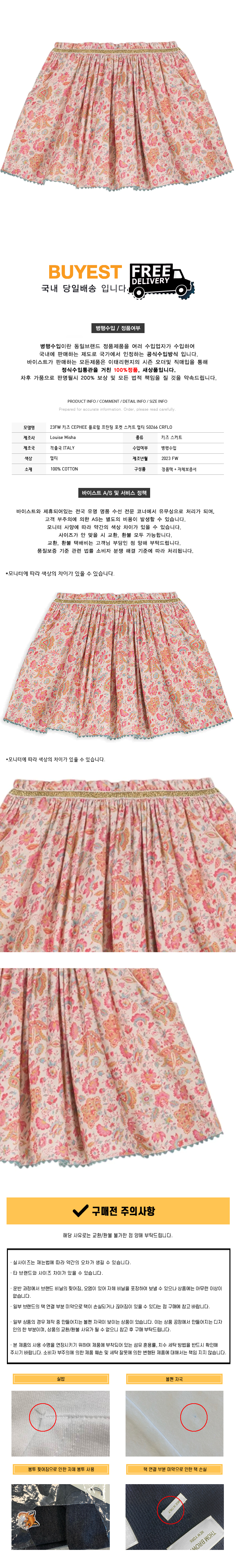 * 모 델 명 : 23FW 키즈 CEPHEE 플로럴 프린팅 포켓 스커트 멀티 S0266 CRFLO