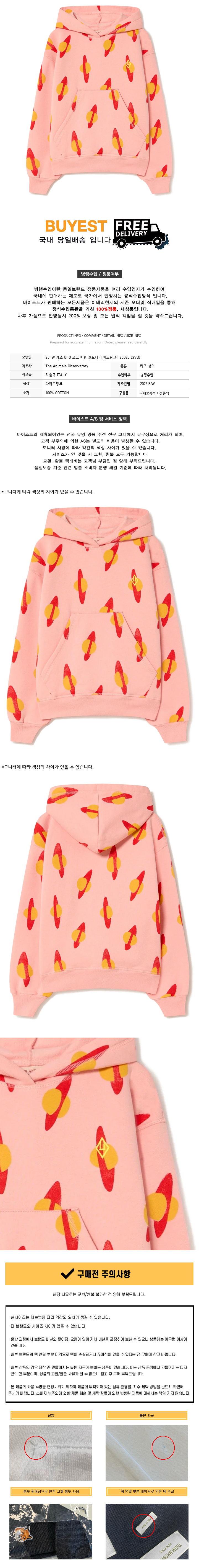 * 모 델 명 : 23FW 키즈 UFO 로고 패턴 후드티 라이트핑크 F23025 297DI