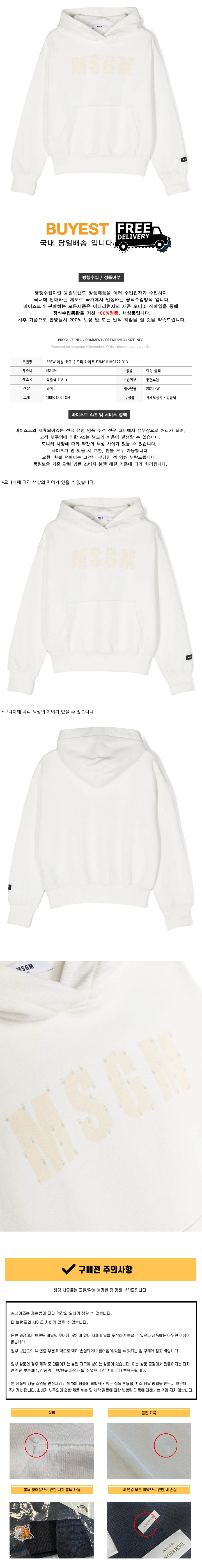 * 모 델 명 : 23FW 여성 로고 후드티 화이트 F3MSJUHS177 013