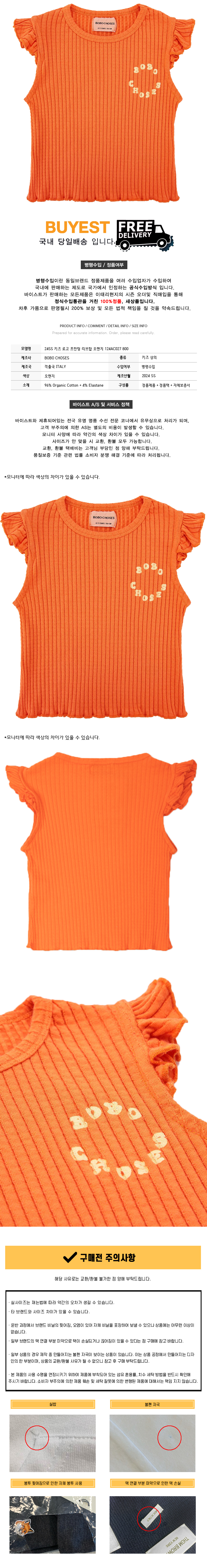 * 모 델 명 : 24SS 키즈 로고 프린팅 리브탑 오렌지 124AC027 800