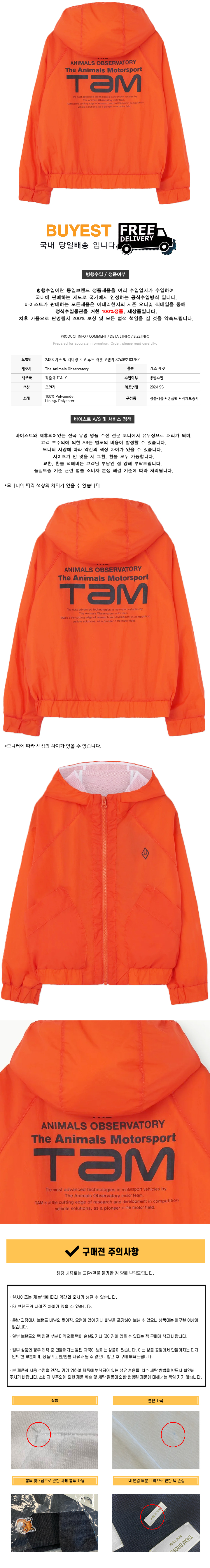 * 모 델 명 : 24SS 키즈 백 레터링 로고 후드 자켓 오렌지 S24092 037BZ