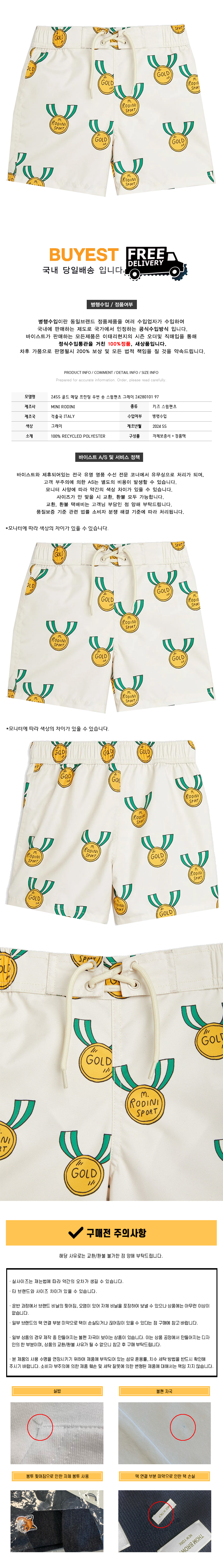 * 모 델 명 : 24SS 키즈 골드 메달 프린팅 우번 숏 스윔팬츠 그레이 24280101 97