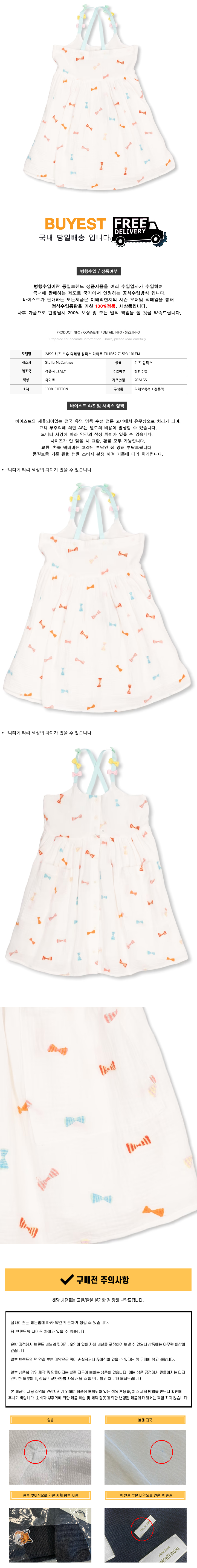 * 모 델 명 : 24SS 키즈 보우 디테일 원피스 화이트 TU1B52 Z1593 101EM