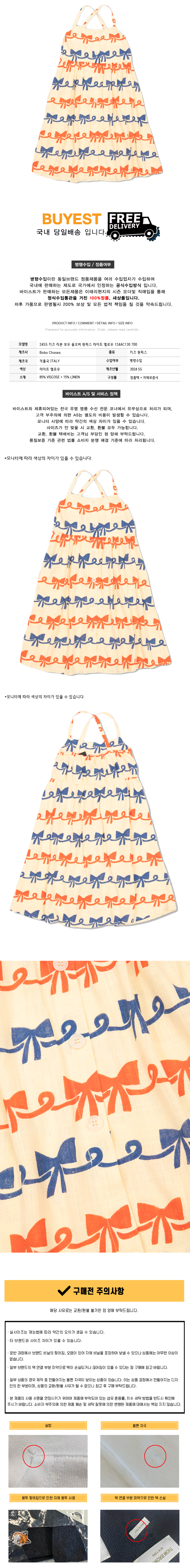 * 모 델 명 : 24SS 키즈 리본 보우 올오버 원피스 라이트 옐로우 124AC130 700