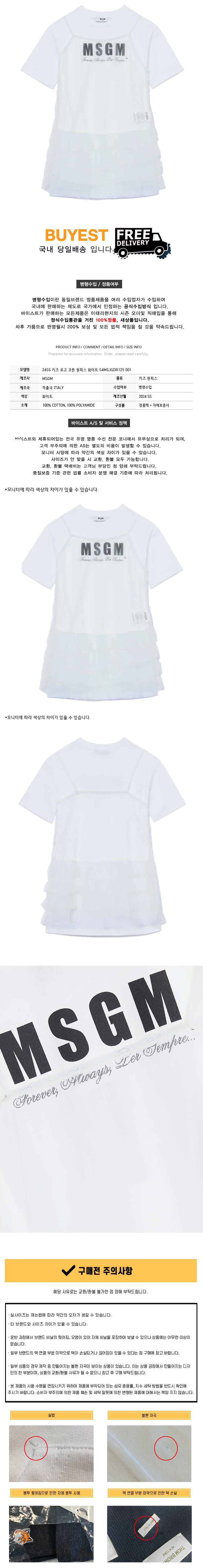 * 모 델 명 : 24SS 키즈 로고 코튼 원피스 화이트 S4MSJGDR125 001