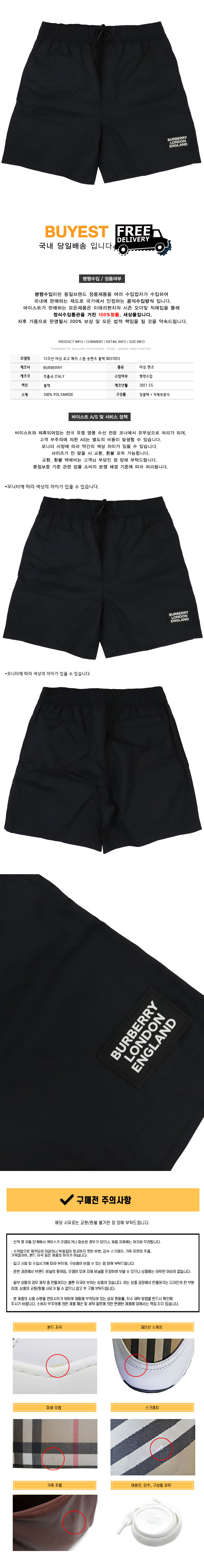* 모 델 명 : 12주년 여성 로고 패치 스윔 숏팬츠 블랙 8037053