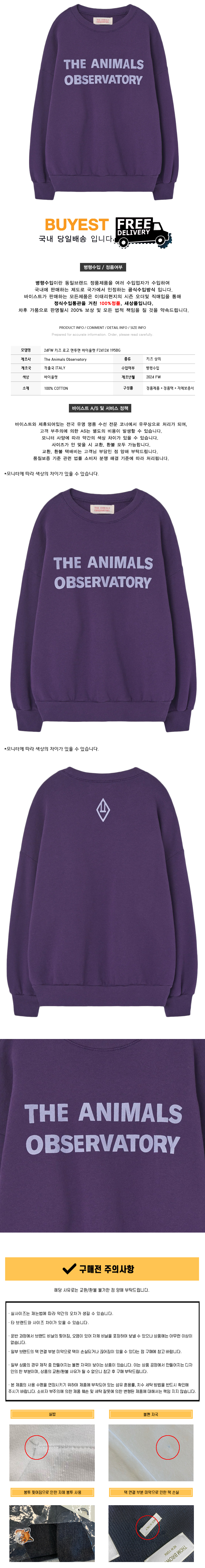 * 모 델 명 : 24SS 키즈 로고 맨투맨 바이올렛 F24124 195BG
