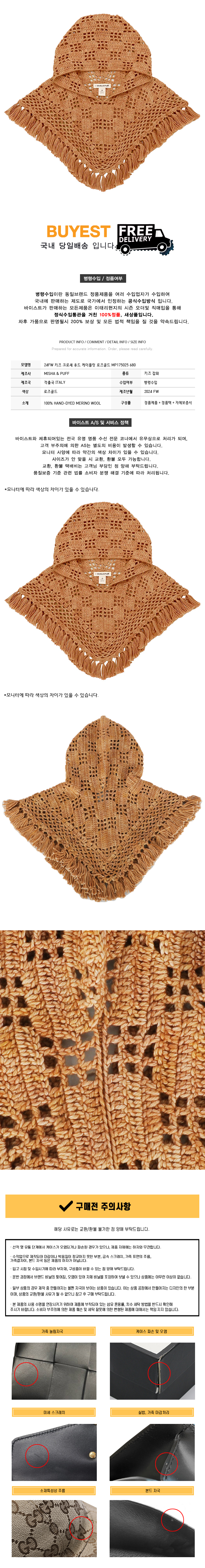 * 모 델 명 : 24FW 키즈 크로셰 후드 케이플릿 로즈골드 MP175025 680