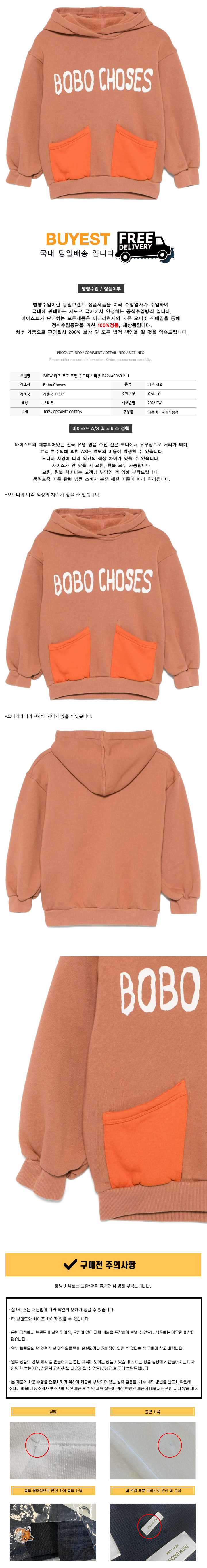 * 모 델 명 : 24FW 키즈 로고 포켓 후드티 브라운 B224AC060 211