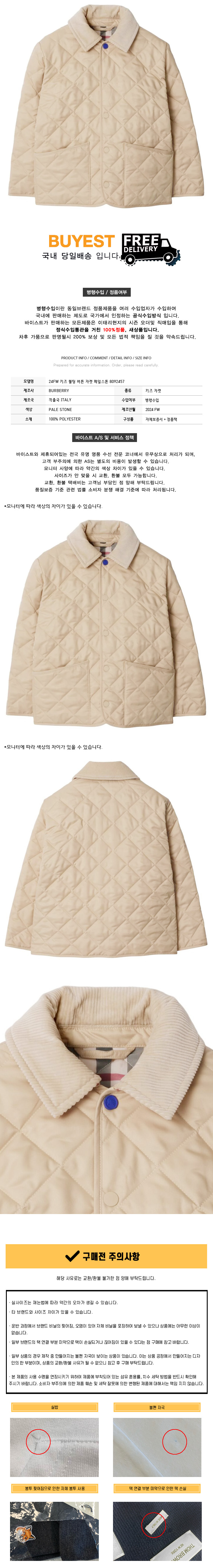 * 모 델 명 : 24FW 키즈 퀄팅 버튼 자켓 페일스톤 8092457