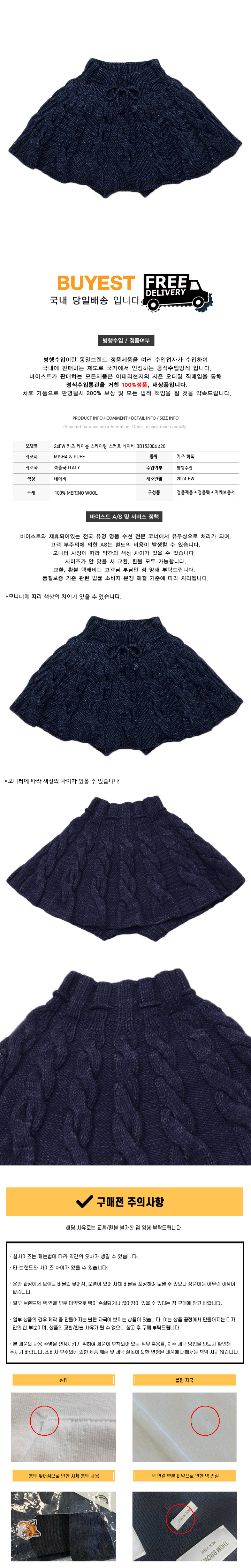 * 모 델 명 : 24FW 키즈 케이블 스케이팅 스커트 네이비 MP153004 420