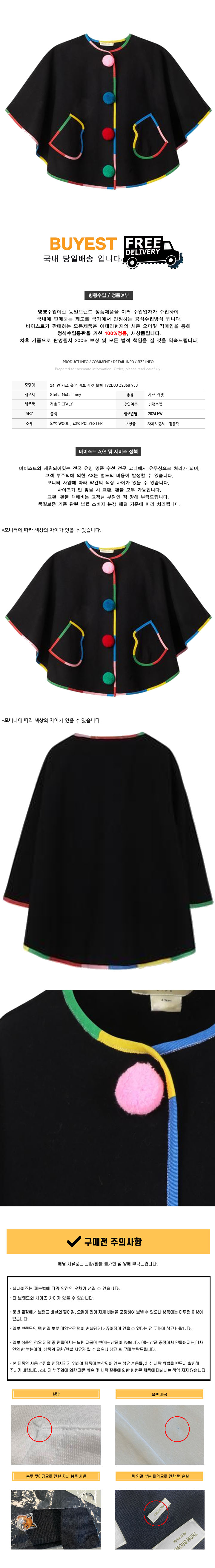 * 모 델 명 : 24FW 키즈 울 케이프 자켓 블랙 TV2D33 Z2368 930