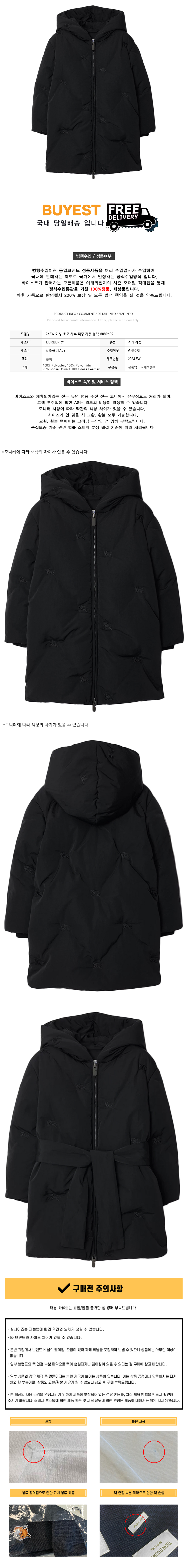 * 모 델 명 : 24FW 여성 로고 자수 패딩 자켓 블랙 8089409