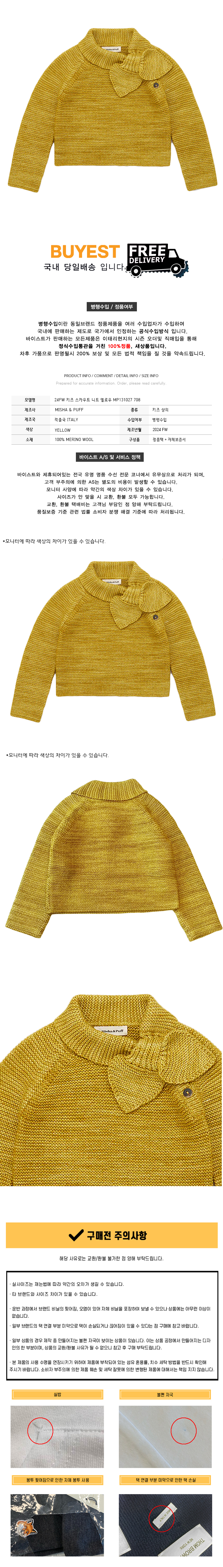 * 모 델 명 : 24FW 키즈 스카우트 니트 옐로우 MP131027 708