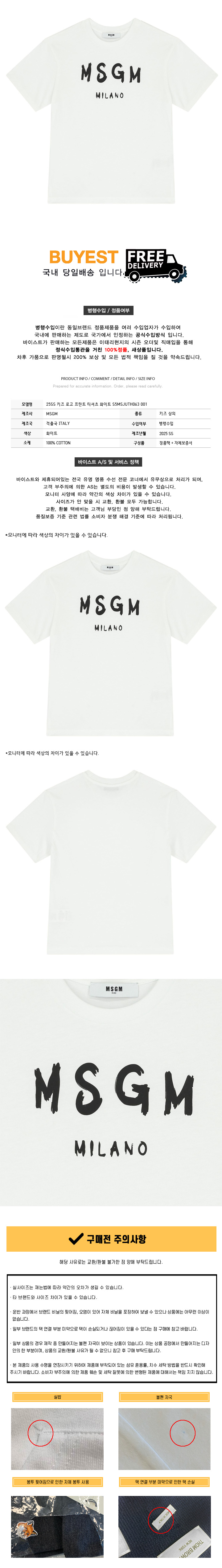 * 모 델 명 : 25SS 키즈 로고 프린트 티셔츠 화이트 S5MSJUTH063 001