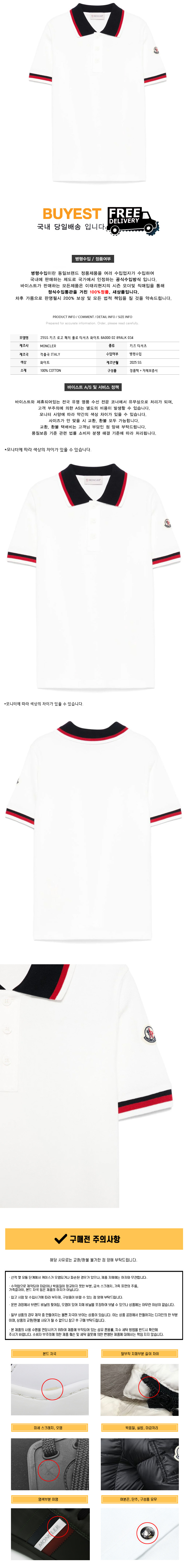 * 모 델 명 : 25SS 키즈 로고 패치 폴로 티셔츠 화이트 8A000 02 89ALK 034
