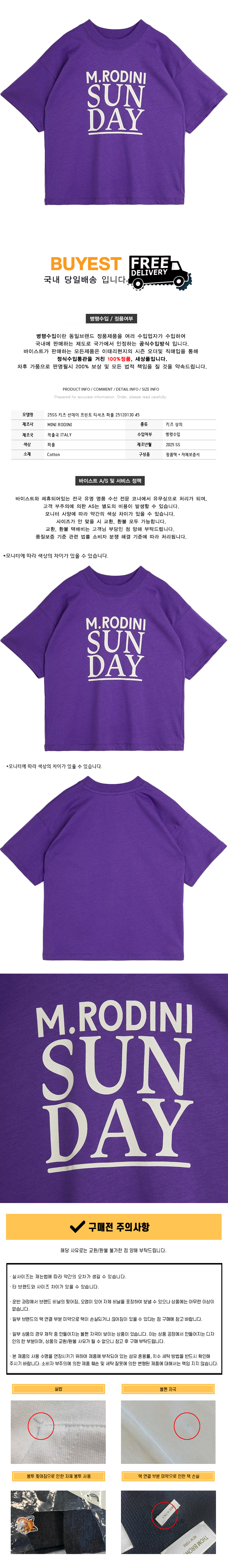 * 모 델 명 : 25SS 키즈 선데이 프린트 티셔츠 퍼플 25120130 45