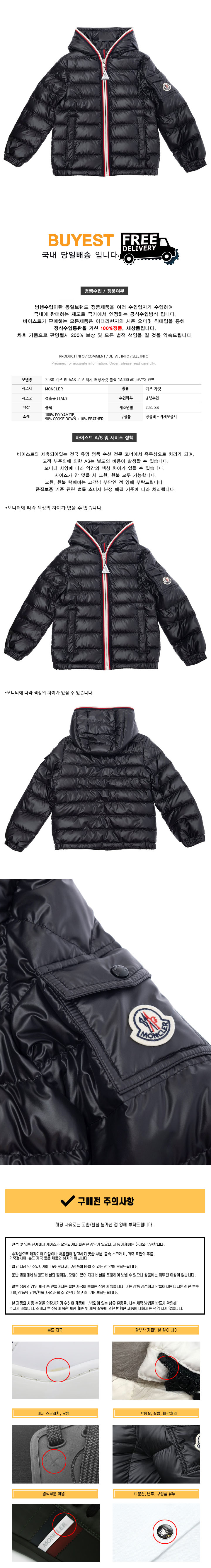 * 모 델 명 : 25SS 키즈 KLAAS 로고 패치 패딩자켓 블랙 1A000 60 597YX 999