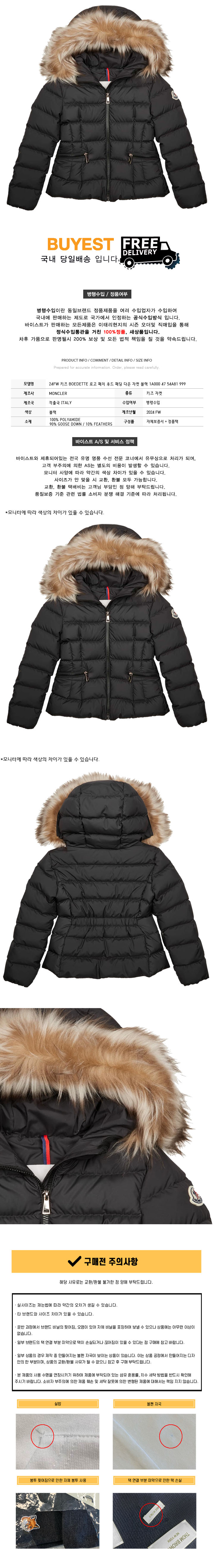 * 모 델 명 : 25SS 키즈 BOEDETTE 로고 패치 후드 패딩 다운 자켓 블랙 1A000 47 54A81 999