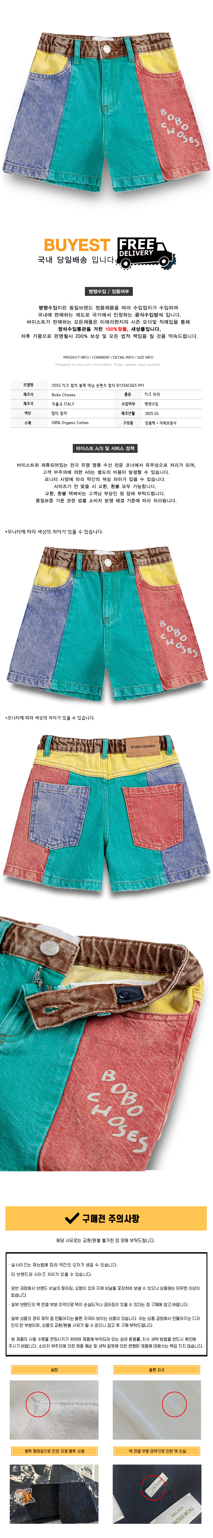 * 모 델 명 : 25SS 키즈 컬러 블록 데님 숏팬츠 멀티 B125AC065 991