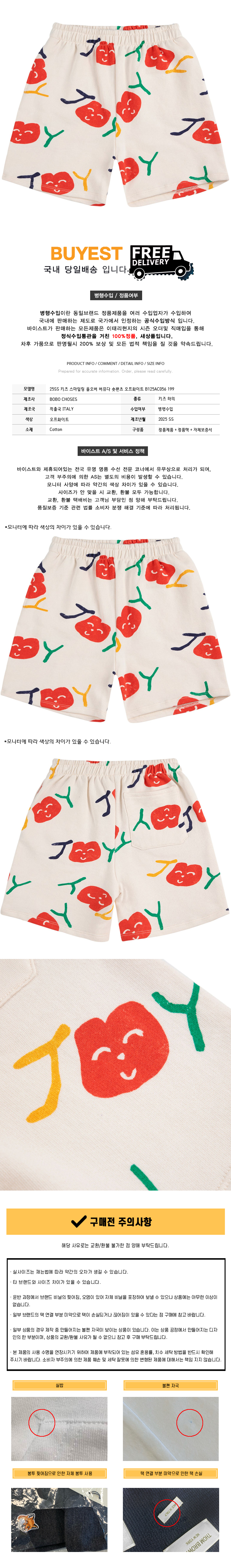 * 모 델 명 : 25SS 키즈 스마일링 올오버 버뮤다 숏팬츠 오프화이트 B125AC056 199