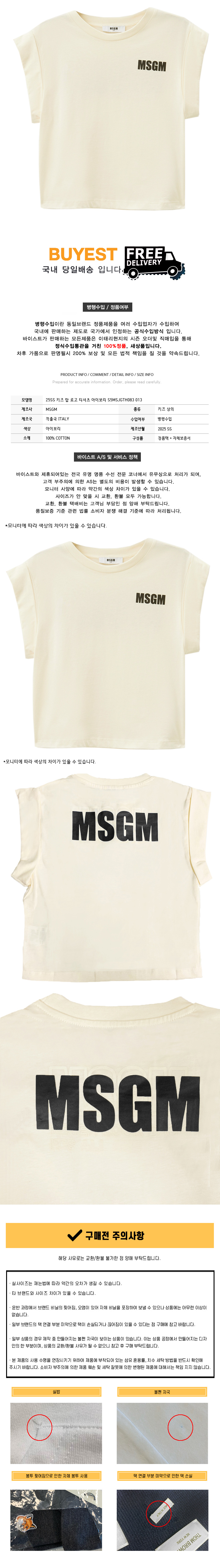 * 모 델 명 : 25SS 키즈 탑 로고 티셔츠 아이보리 S5MSJGTH083 013