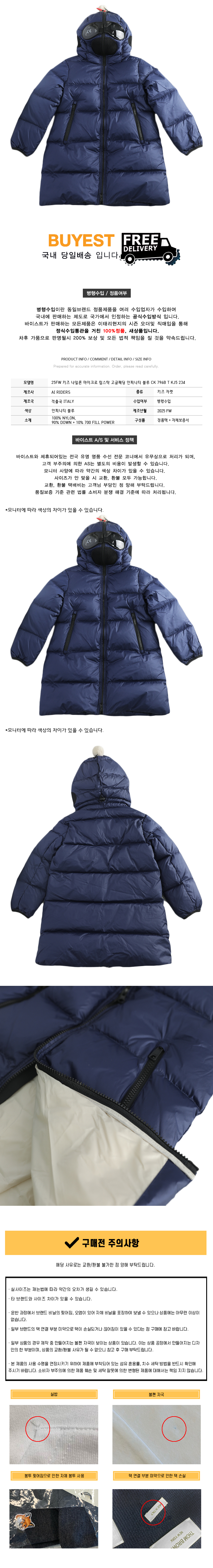 * 모 델 명 : 25FW 키즈 나일론 마이크로 립스탁 고글패딩 인피니티 블루 CK 796B T KJ5 234