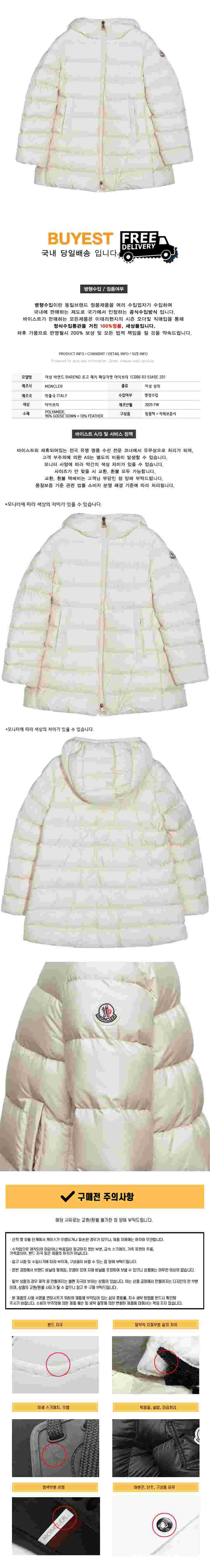 * 모 델 명 : 여성 바엔드 BAREND 로고 패치 패딩자켓 아이보리 1C000 03 53A5E 201