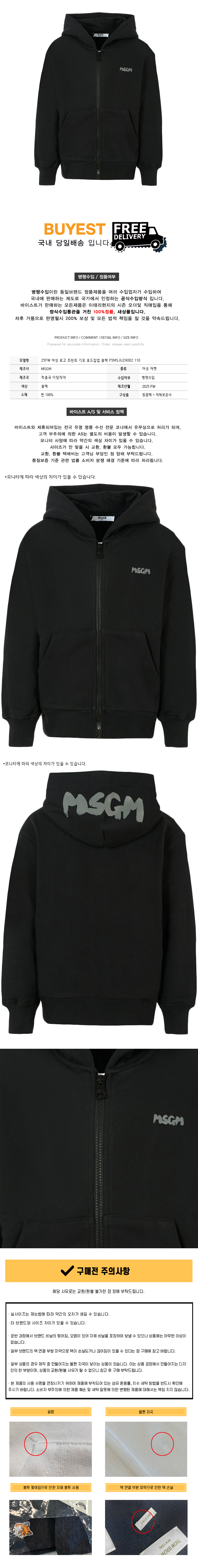 * 모 델 명 : 25FW 여성 로고 프린트 기모 후드집업 블랙 F5MSJUZH002 110