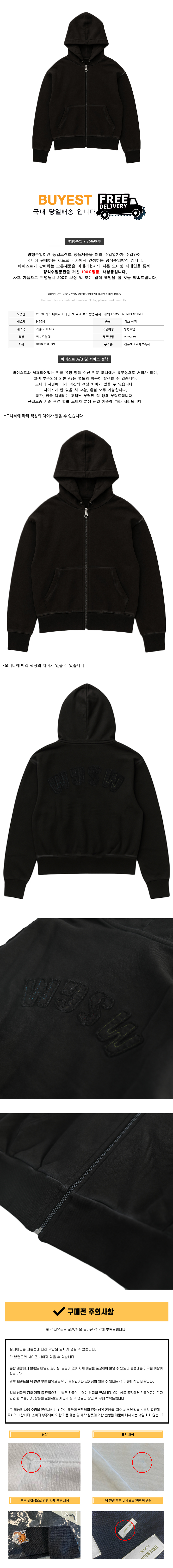 * 모 델 명 : 25FW 키즈 데미지 디테일 백 로고 후드집업 워시드블랙 F5MSJBZH203 MS040