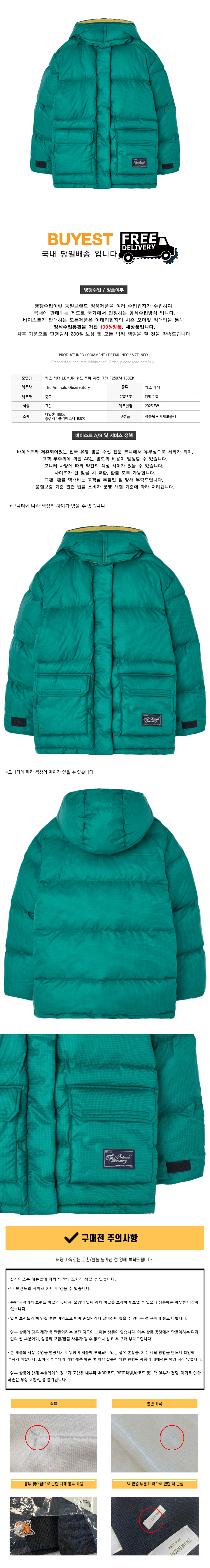 * 모 델 명 : 키즈 리머 LEMUR 후드 푸퍼 자켓 그린 F25074 188EK