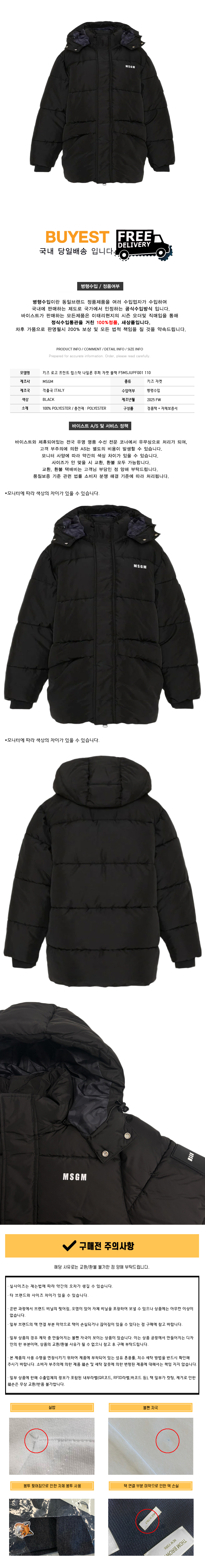 * 모 델 명 : 키즈 로고 프린트 립스탁 나일론 푸퍼 자켓 블랙 F5MSJUPF001 110