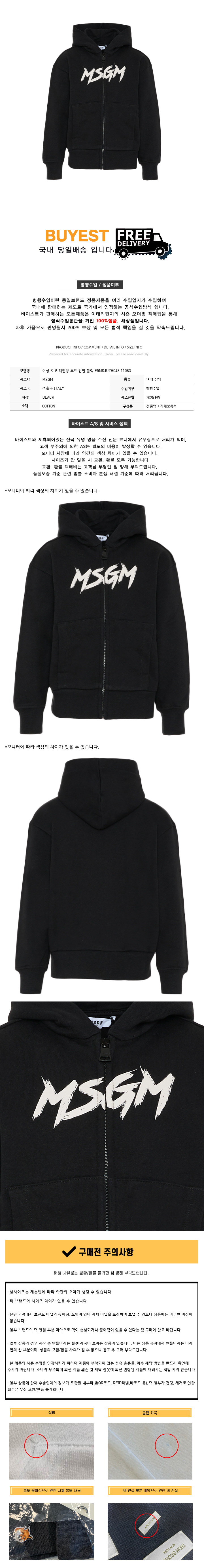* 모 델 명 : 여성 로고 페인팅 후드 집업 블랙 F5MSJUZH048 11083