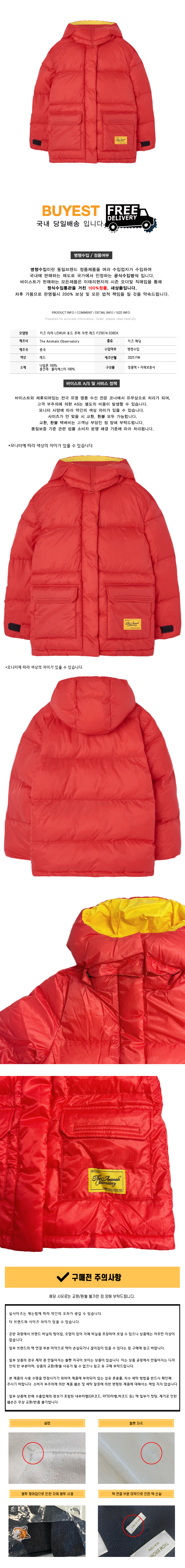* 모 델 명 : 키즈 리머 LEMUR 후드 푸퍼 자켓 레드 F25074 038EK