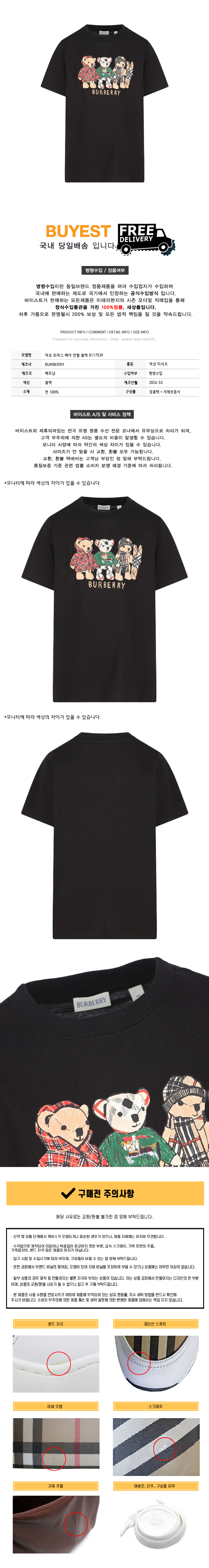 * 모 델 명 : 여성 토마스 베어 반팔 블랙 8117539
