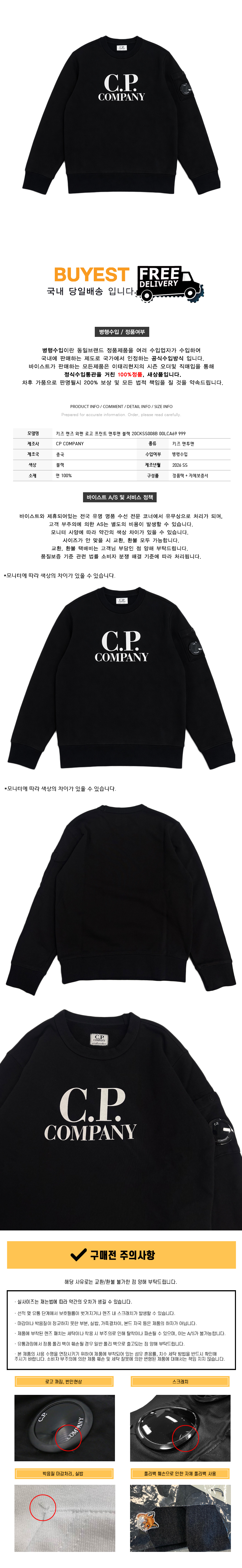 * 모 델 명 : 키즈 렌즈 와펜 로고 프린트 맨투맨 블랙 20CKSS008B 00LCA69 999