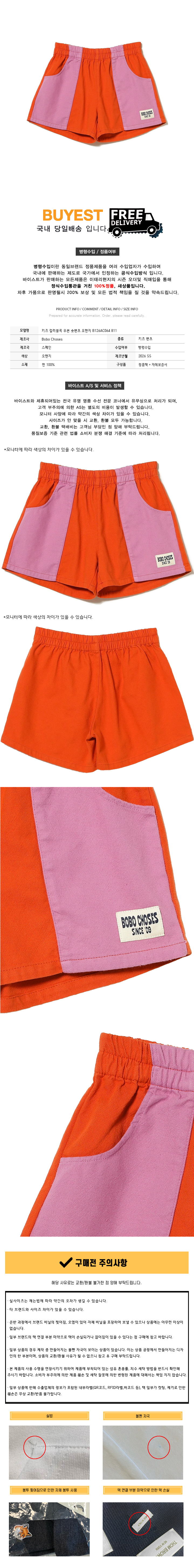 * 모 델 명 : 키즈 컬러블록 우븐 숏팬츠 오렌지 B126AC064 811