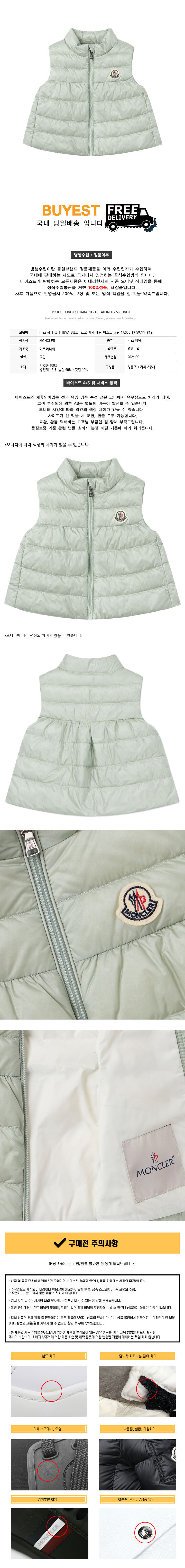 * 모 델 명 : 키즈 히바 질레 HIVA GILET 로고 패치 패딩 베스트 그린 1A000 19 597YF 91Z