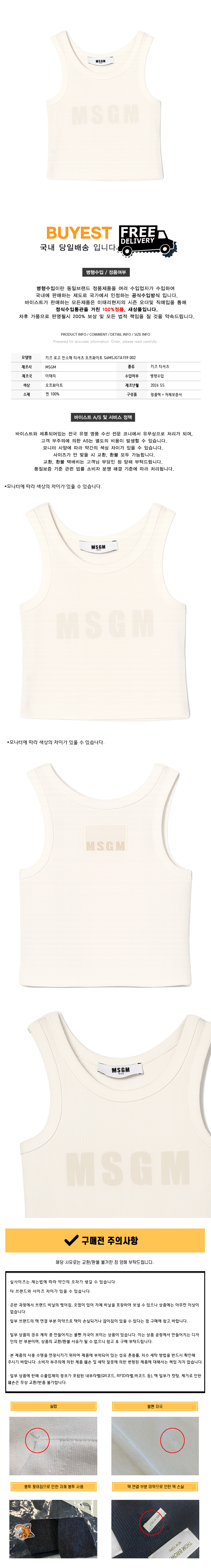 키즈 로고 민소매 티셔츠 오프화이트 S6MSJGTA159 002