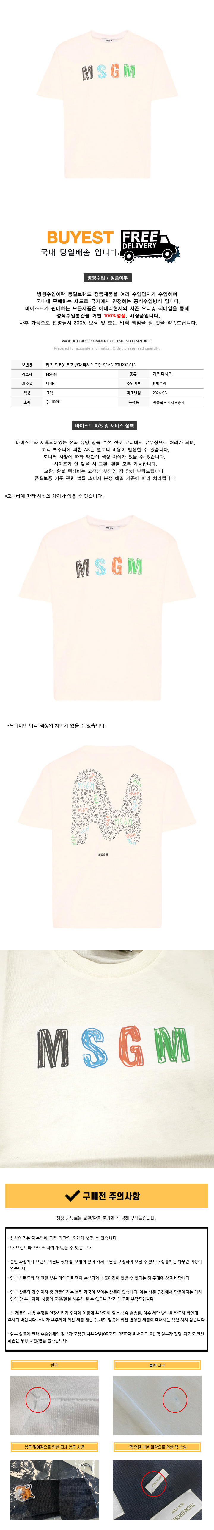 키즈 페인팅 로고 반팔 티셔츠 크림 S6MSJBTH227 013